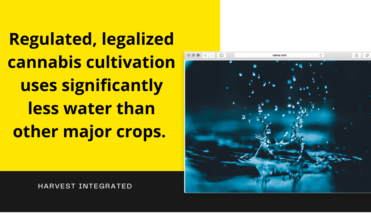 Understanding the root causes of sustainability issues is also important when looking at making growing practices more sustainable. Take water use for instance. Research conducted in partnership with New Frontier Data, an authority in business intelligence for the cannabis industry, has found that the regulated, legalized cannabis industry in California uses significantly less water than other major crops such as wheat, corn and cotton.